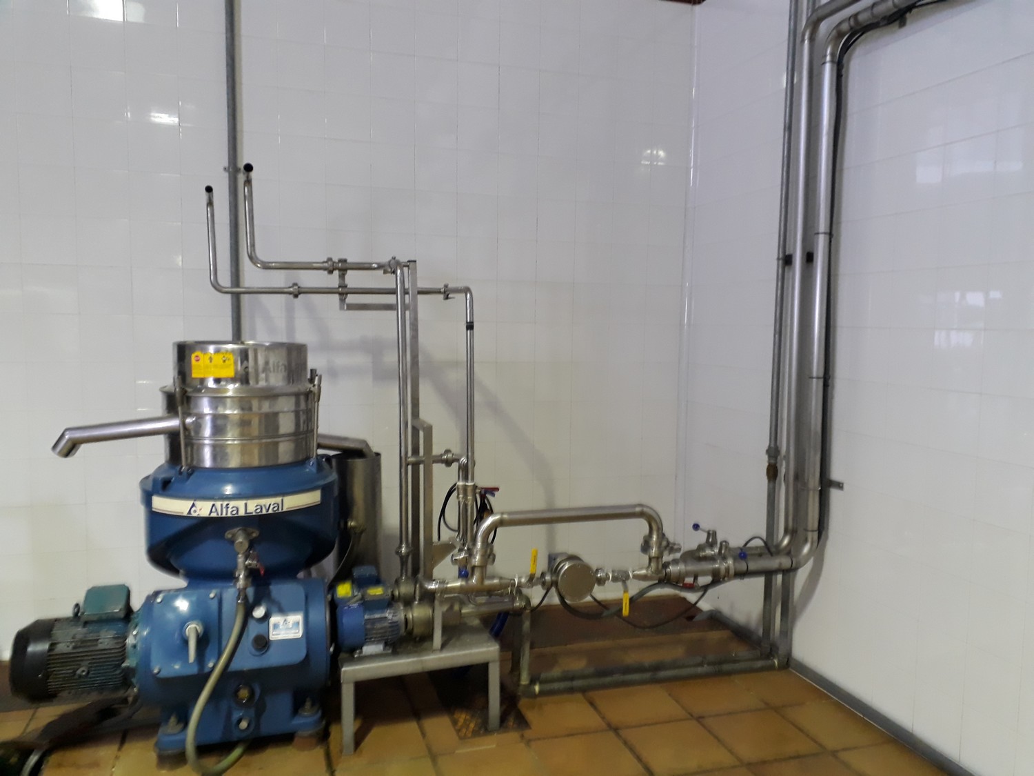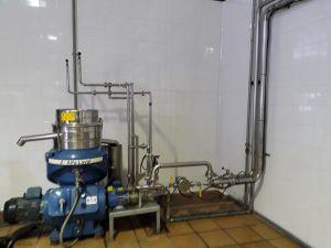 Ubicación de maquinaria (molino, decanter, separadora, bombas) y posterior instalación de las uniones entre ellas con tuberías de acero inoxidable y válvulas.
