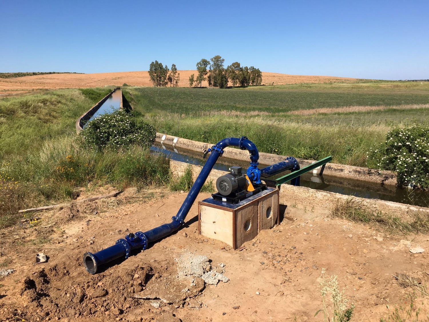 Instalación completa de tuberías, bombas y válvulas en acero al carbono. Fabricación en taller e instalación y puesta en marcha en finca.